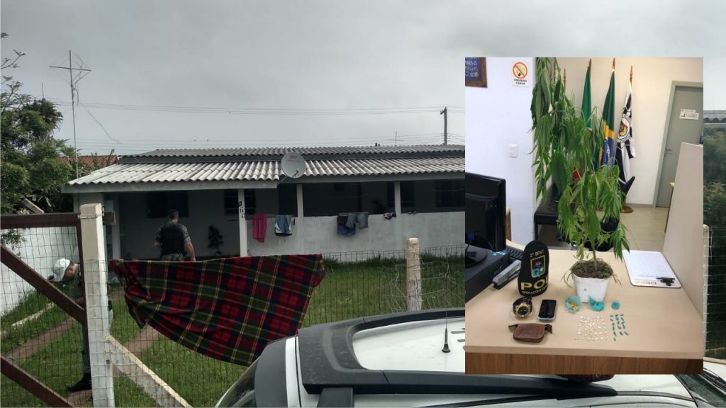 No lado de fora estavam os últimos dois, e com eles encontrado uma planta de maconha de aproximadamente um metro.