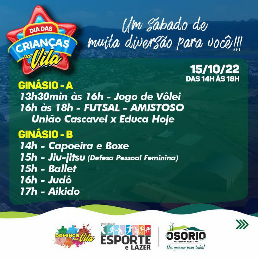 Hoje, sábado (15), acontece o Dia das Crianças na Vila. [wp_bannerize_pro orderby=”random” categories=”wp-bannerize-plano-1″ numbers=”1″ mobile=“1”] Mesmo em caso de chuva, o evento está confirmado. As atividades serão realizadas no Centro…