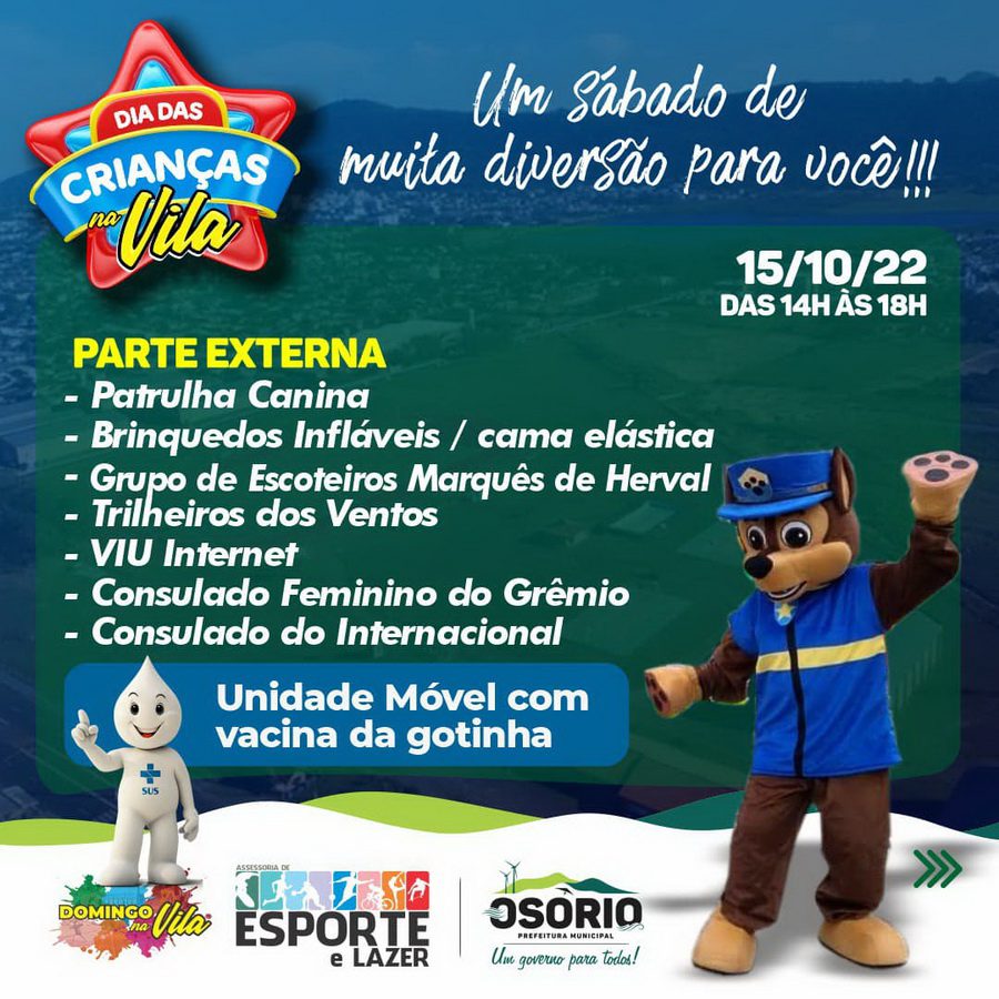 Hoje tem grande festa para as crianças em Osório