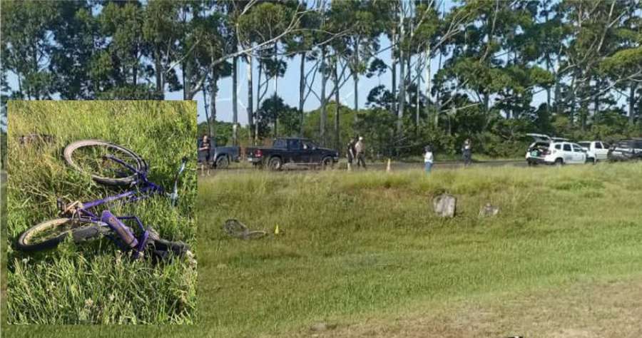 Próximo ao cadáver foi encontrado uma bicicleta e partes de um automóvel.