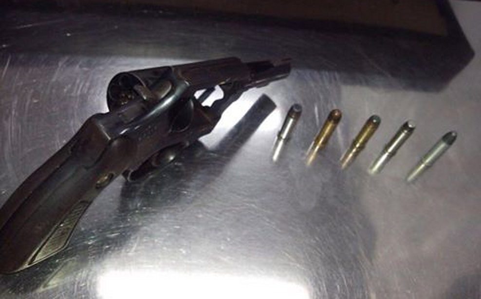 Um revólver Taurus calibre 38, municiado e com numeração raspada foi apreendido. O caso ocorreu por volta das 23h30min dessa segunda-feira.