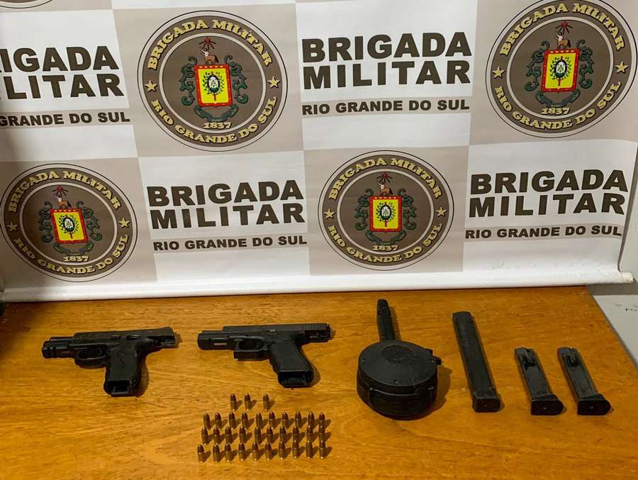 Realizada a abordagem, os policiais militares localizaram na bolsa duas Pistolas calibre .9mm, 33 munições do mesmo calibre e carregadores, dentre eles um carregador caracol com maior capacidade de munições.