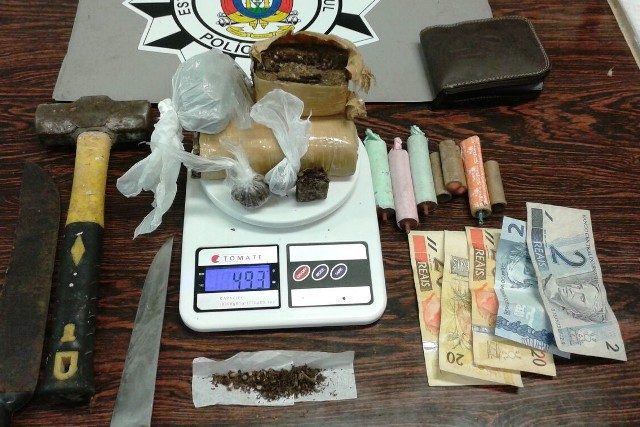 Com o flagrado foi apreendido quase meio quilo de drogas, dinheiro, uma balança de precisão e materiais usados no processamento da droga. Um usuário que estava no local comprando drogas também foi encaminhado à DP para registro de ocorrência.