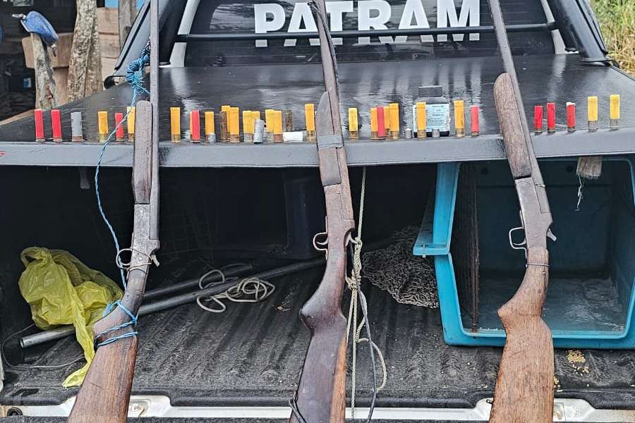 Além disso, foram apreendidas três espingardas, sendo duas de calibre 20 e uma de calibre 32.