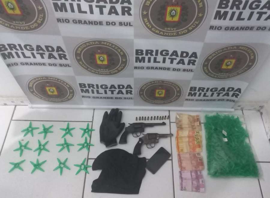 A Brigada Militar prendeu um homem por porte ilegal de arma de fogo e tráfico de drogas, na madrugada de domingo (09/01), em Balneário Pinhal.