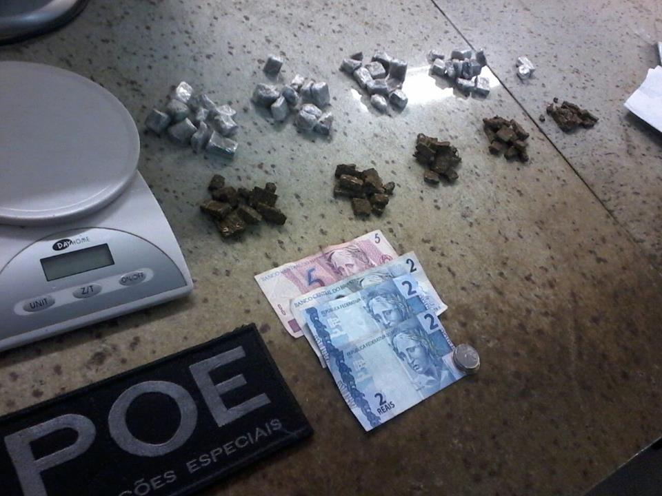No interior do local ainda foram localizados mais 27 papelotes de maconha e 39 pedaços da droga sem embalagem (141g), além de uma balança de precisão.