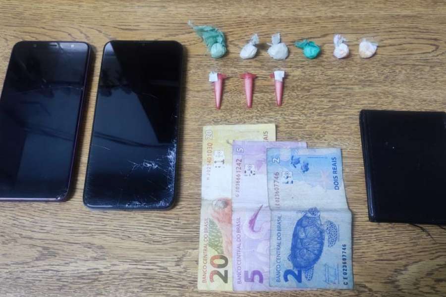 Após informações sobre o indivíduo que estava traficando no local, uma equipe da Força Tática do 8ºBPM localizou o homem sendo encontrado com ele seis porções de cocaína e três pinos da mesma droga.