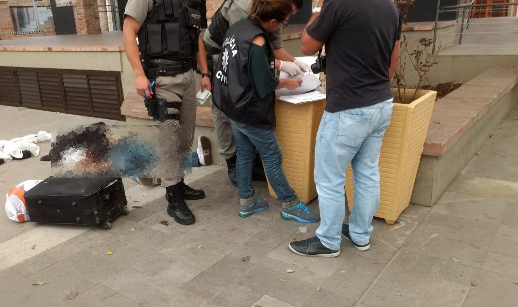 A hipótese mais provável é que ele tenha tido um mal súbito. Uma mala com pertences pessoais da vítima ficou ao lado do corpo.