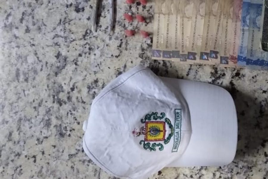 O carro foi localizado e abordado, sendo encontrados sete pinos de cocaína, dois cigarros de maconha, R$ 400,00 em notas diversas e um telefone celular Motorola.