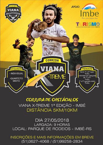 A prova iniciará às 9h. mais informações e inscrições podem ser obtidas através dos telefones (51) 3627-4068 e (51) 99258-2834. O evento é uma realização da Academia Viana Fitness com apoio da Prefeitura de Imbé, através da Secretaria Municipal de Turismo, Desporto, Indústria e Comércio (SETUR).