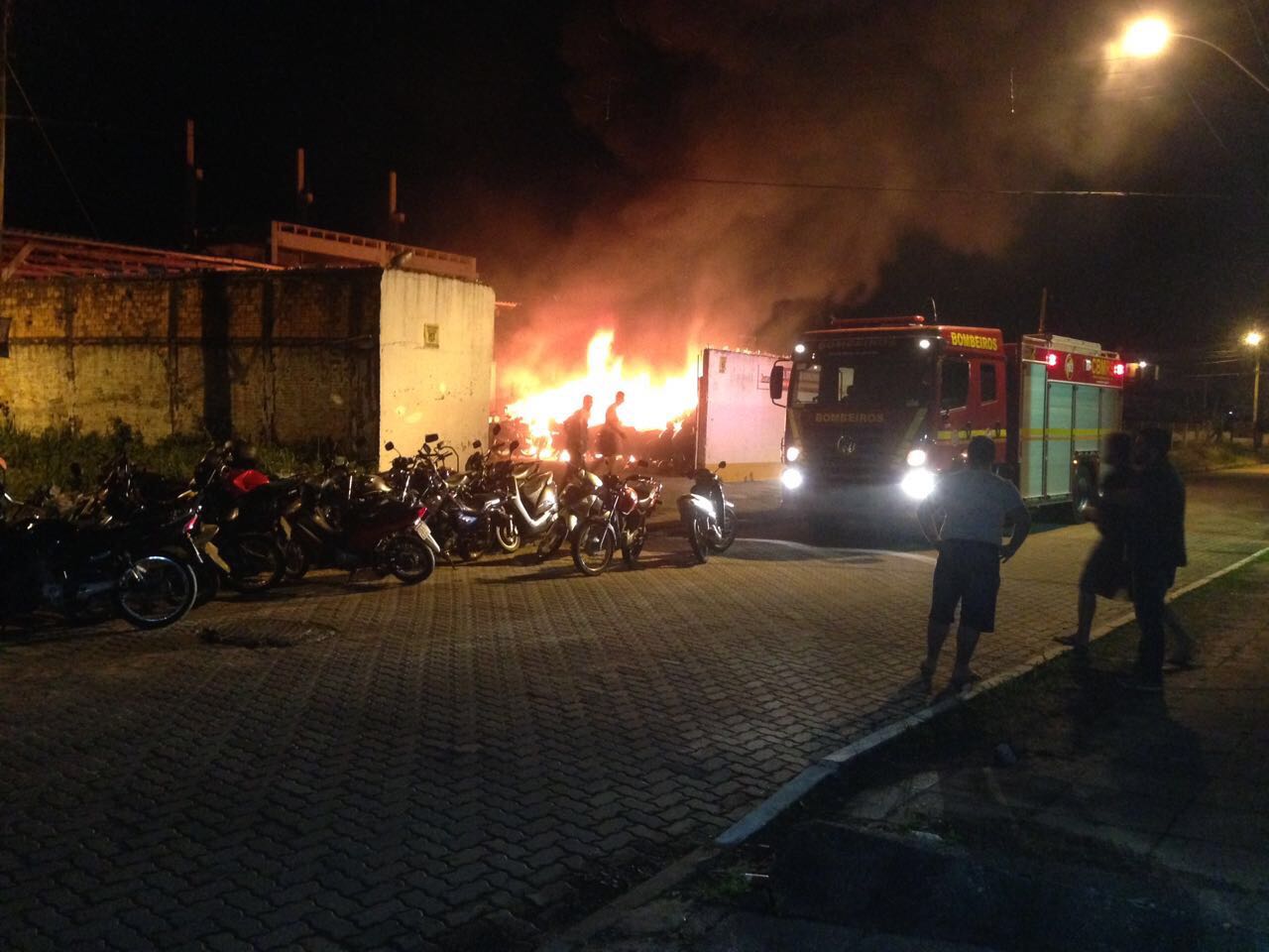 As chamas na empresa localizada no bairro Santo Antônio, na Estrada do Mar, começaram por volta da 1h deste domingo.