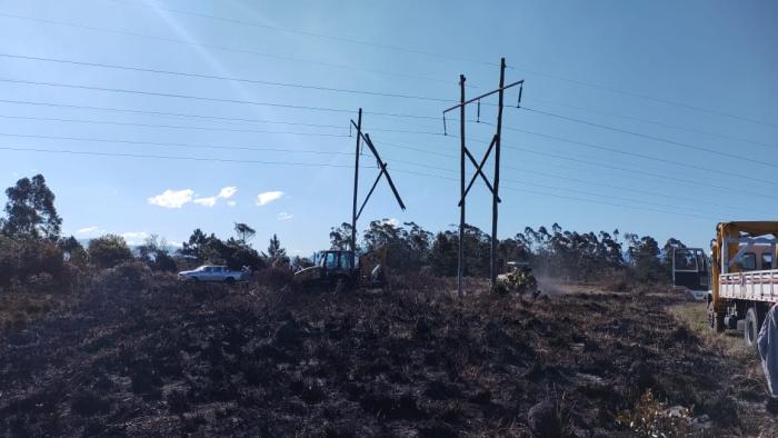Com isso, a linha de transmissão que leva a energia até a subestação da região foi desarmada, em uma medida de segurança.
