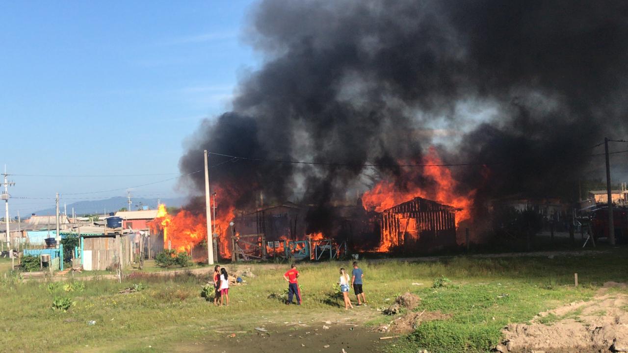 Um incêndio destruiu três residências e um veículo, na manhã desta quinta-feira (20), no bairro Albatroz em Imbé.