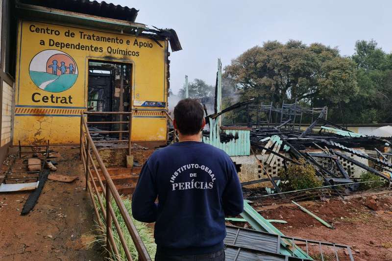Rio Grande do Sul: Quando as chamas cessaram, pouco sobrou do Centro de Reabilitação de Dependentes Químicos (Cetrat), no bairro Vila Rica, em Carazinho.