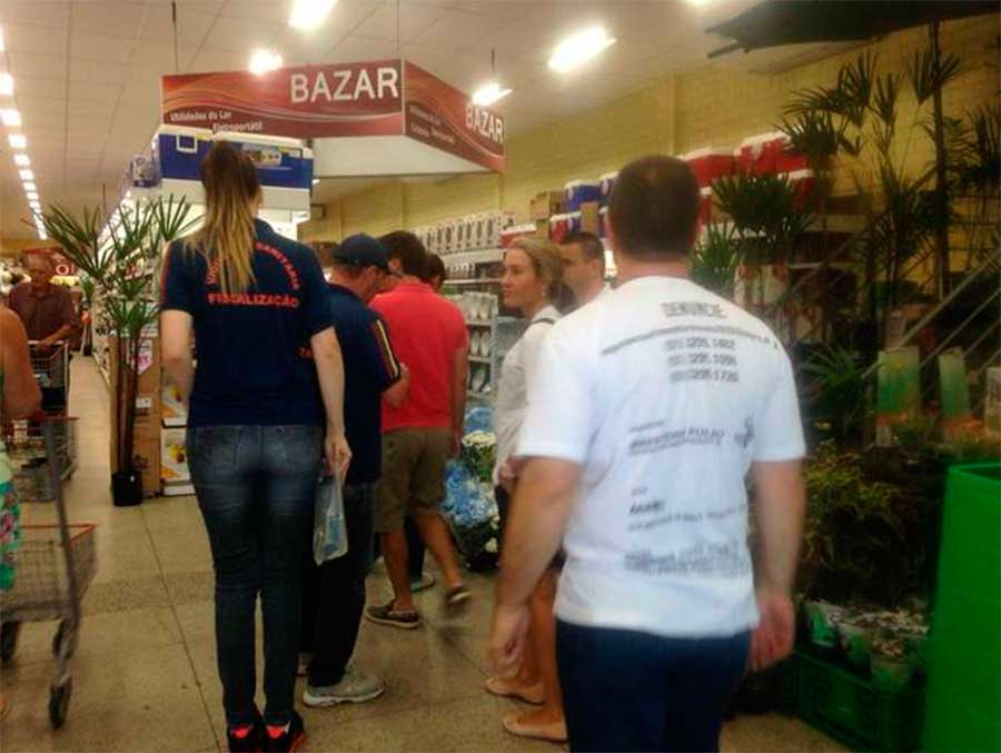 Nesta segunda-feira, 25, a equipe de fiscalização está vistoriando supermercados de Capão da Canoa. No estabelecimento Leve Mais foi assinado auto de infração em virtude de doces, presunto e queijo sem identificação de procedência. O banheiro e o vestiário dos funcionários foram interditados.