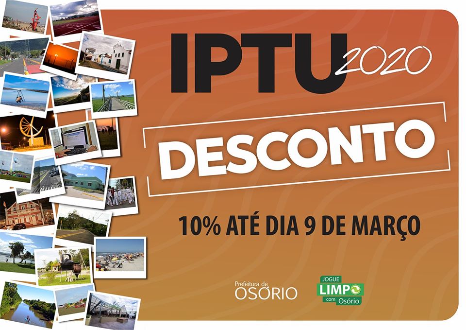 Os contribuintes irão receber os carnês via Correios ou podem entrar no site da Prefeitura de Osório no endereço: osorio.atende.net – no item Auto atendimento – Emissão de guia de IPTU 2020, preencher campos necessários e imprimir guias, tanto a do IPTU, bem como a da taxa do lixo.
