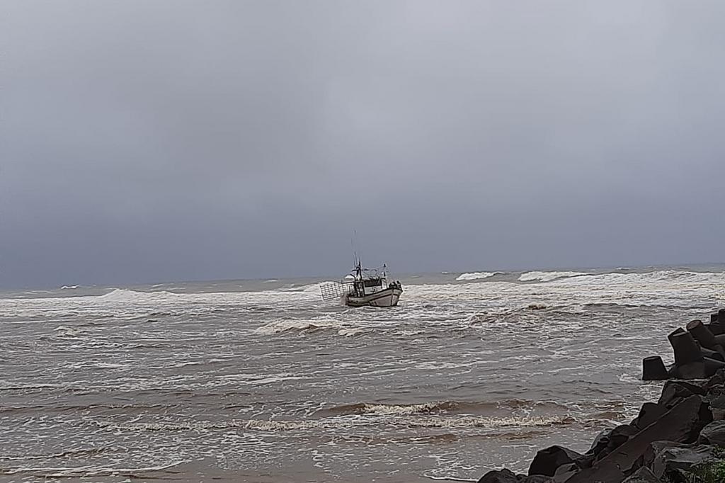 O mar estava muito agitado e a embarcação encalhou a cerca de 50 metros da barra do Rio Mampituba.