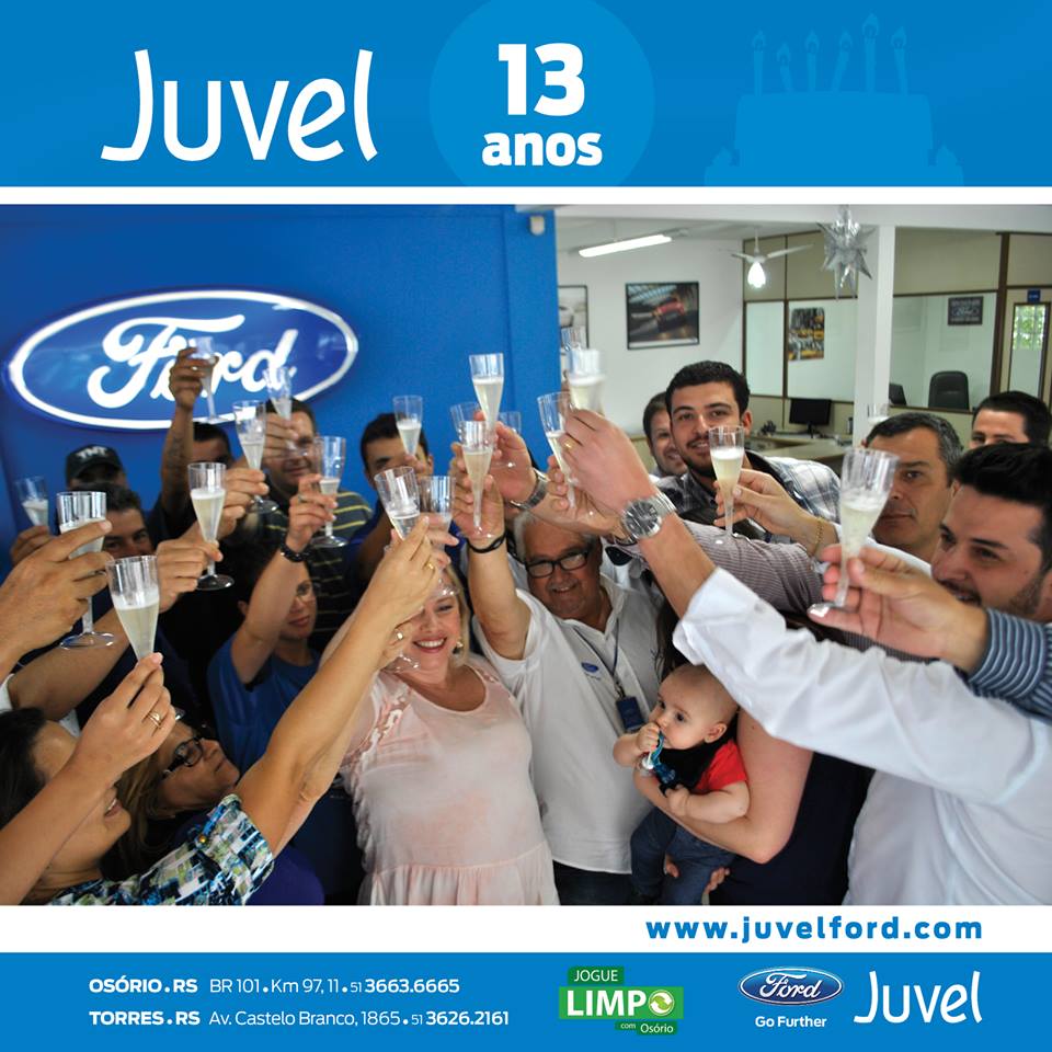A Juvel Veículos completou 13 anos nessa terça-feira, 16 de dezembro. A família Ford comemorou a data que teve direito a brinde e é claro um delicioso bolo.