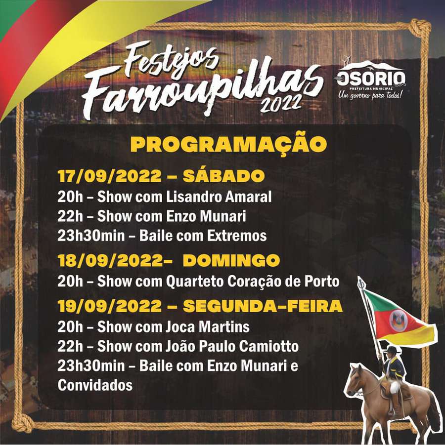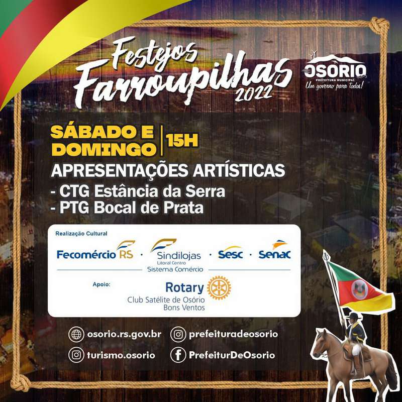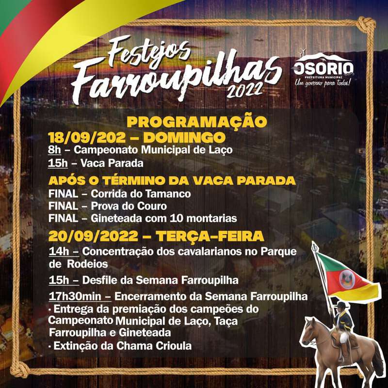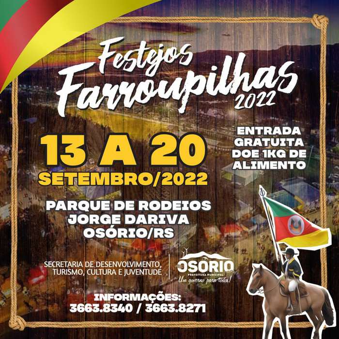 A secretaria de Desenvolvimento, Turismo, Cultura e Juventude de Osório lançou nesta quarta-feira, dia 10, a programação oficial dos Festejos Farroupilhas 2022.