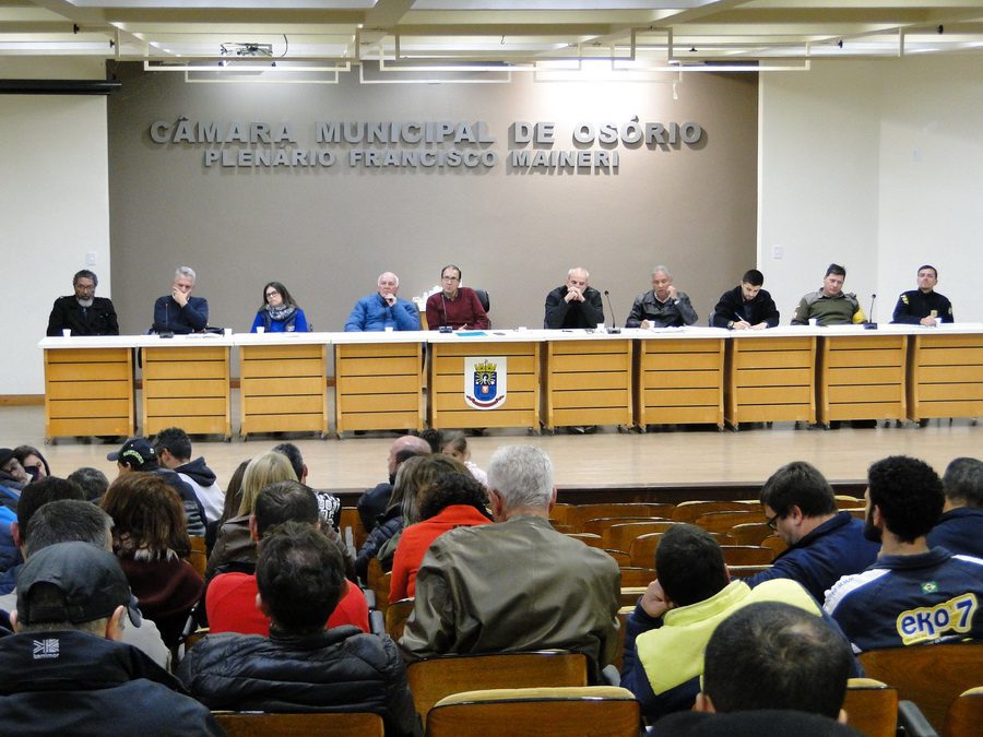 A mesa de trabalhos, mediada pelo proponente da audiência, Vereador Roger Caputi, contou com a presença de diversas autoridades: vice-prefeito municipal, Eduardo Renda; representante da Polícia Rodoviária Federal, Thalis Magalhães Saldanha; representante da Polícia Rodoviária Estadual, Sargento Paulo Krambeck; presidente do Conselho Municipal de Turismo, Gilson Becker; diretora do CFC Osoriense, Fernanda Stenzel; assessor municipal de esporte e lazer, Erasmo Silva; dirigente municipal de trânsito Alcimar Lorenzato e o representante do DNIT, engenheiro Pedro Luzardo Gomes.