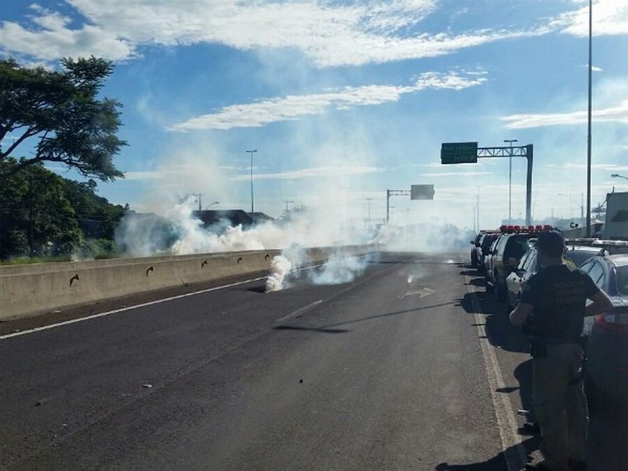 Bombas de gás de lacrimogêneo chegaram a ser arremessadas contra caminhoneiros e pelo menos duas pessoas foram presas.