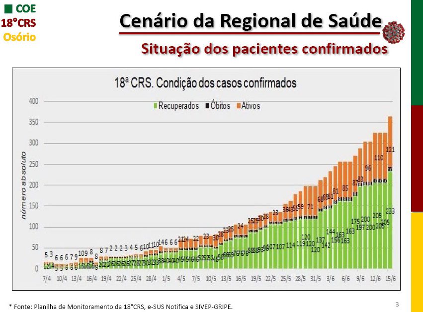 Já os casos totais confirmados chegaram a 364, após o último boletim divulgado pela 18° CRS, na noite desta segunda-feira (15).