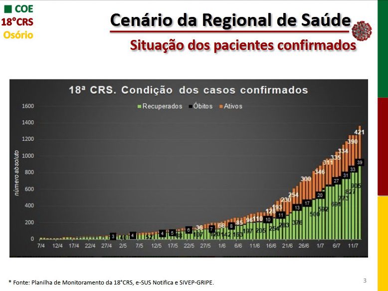 Desde o último boletim divulgado na sexta-feira 10/06, ocorreram seis óbitos distribuídos nos municípios de Osório, Imbé, Torres e Santo Antônio da Patrulha.
