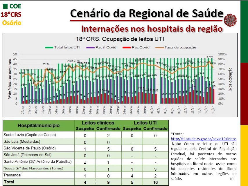 Torres, Santo Antônio da Patrulha, Arroio do Sal, Cidreira, Capão da Canoa tiveram um óbito pelo covid-19. Osório, dois e Tramandaí, três mortes.