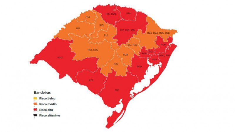 As regiões de Novo Hamburgo, Porto Alegre, Canoas, Taquara e Passo Fundo já estavam na bandeira vermelha na 13ª rodada e foram mantidas. A região de Lajeado apresentou melhora nos indicadores e reduziu para a bandeira laranja.
