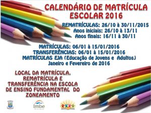 Confira o calendário de matrículas e rematrículas para 2016 em Imbé