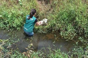Cachorro idoso preso em valo por 3 dias é salvo em Imbé