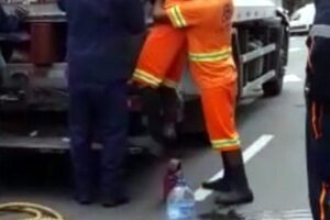 Gari fica ferido em caminhão de lixo em Osório (vídeo)
