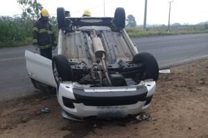 Motorista perde controle de veículo e capota na Estrada do Mar em Osório