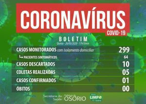 Osório atualiza números do coronavírus: 299 casos monitorados
