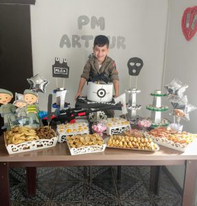 Menino comemora aniversário em Osório com tema da Brigada Militar