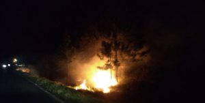 Bombeiros controlam incêndio as margens da Estrada do Mar