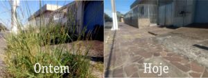 Calçada onde mato tomava conta é limpa no centro de Osório