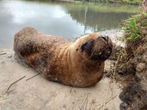 Patrulha Ambiental resgata leão marinho ferido no Litoral