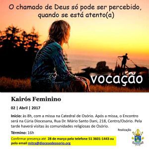 Diocese de Osório realizará o encontro vocacional “Kairós Feminino” em abril
