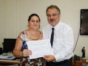 Professora Enilda recebe certificado de aposentadoria em Osório