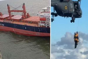 Marinha resgata tripulante ferido em navio turco na costa do RS