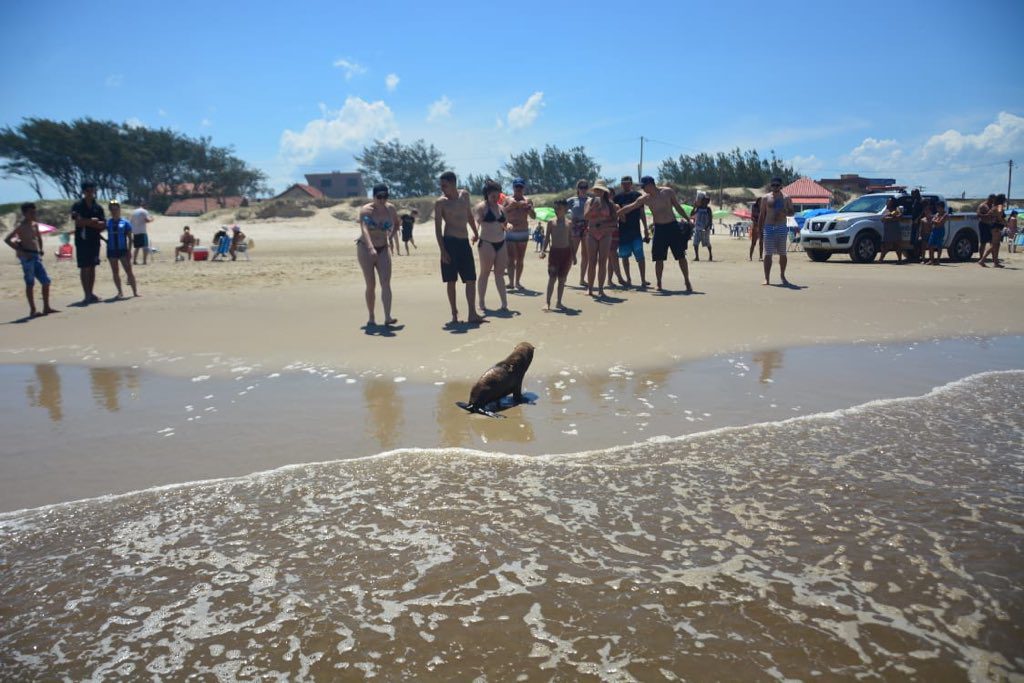 O animal recebeu atendimento das equipes do Centro de Estudos Costeiros, Limnológicos e Marinhos da UFRGS (Ceclimar) e da Patrulha Ambiental da Brigada Militar (Patram) e já foi recolocado em outra praia com menos movimento para voltar ao mar.