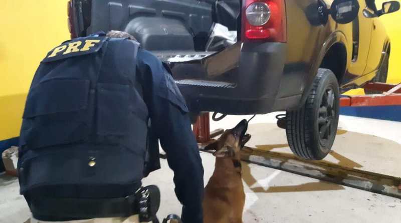 Após receberem informações do serviço de inteligência da PRF, Policiais Rodoviários Federais abordaram uma Montana com placas de São Paulo que transitava em direção à capital.