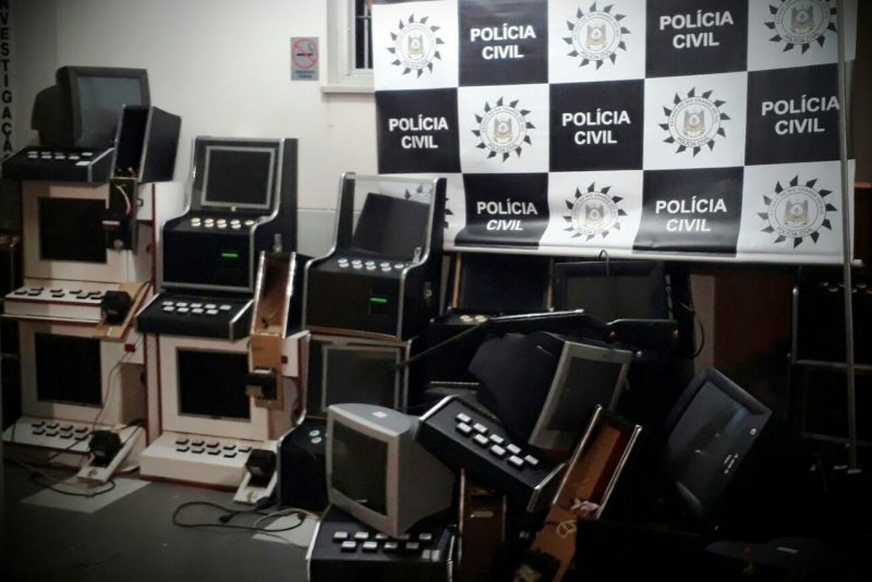 A Polícia Civil, durante ação da Delegacia de Polícia de Osório, na tarde dessa quinta-feira (22) apreendeu 24 máquinas caça-níqueis, R$ 2.530,00 em dinheiro, bilhetes e anotações do jogo do bicho.