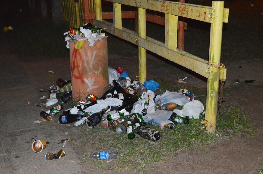 Aos finais de semana, quando a praia lota, cerca de três caçambas de lixo são recolhidas.