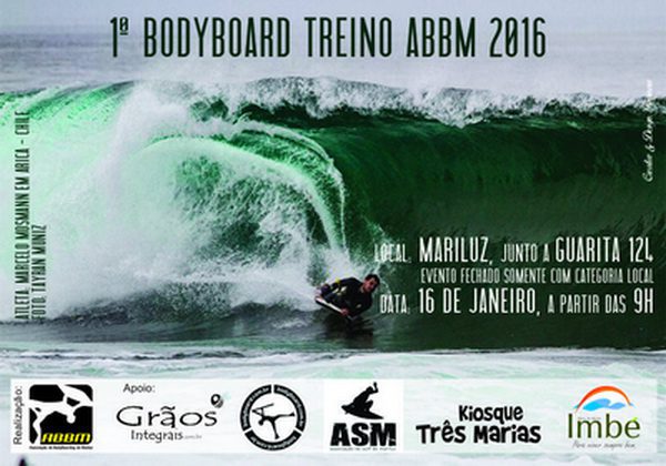 A Associação de Bodyboard de Mariluz (ABBM) realizará no próximo sábado (16), a partir das 9h, o 1º Bodyboard Treino 2016, junto a Guarita 124 no Balneário Mariluz.