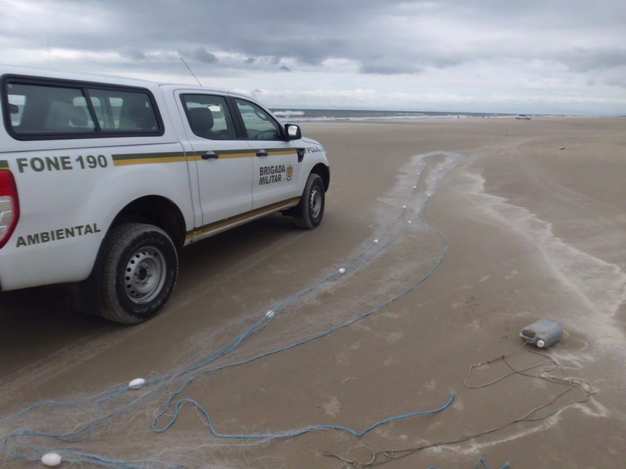 O Comando Ambiental da Brigada Militar realizou nesta sexta-feira (02/01) uma varredura nas praias do Litoral Norte, com o objetivo de coibir a pesca predatória e o uso irregular de apetrechos para tal atividade. Durante a fiscalização a guarnição motorizada abordou um indivíduo pescando irregularmente, no município de Capão Novo, utilizando-se de uma rede de pesca profissional de malha 100mm, com 50 m de cumprimento, sem possuir autorização, e em local proibido para pesca amadora, incorrendo em crime tipificado na lei dos Crimes Ambientais.