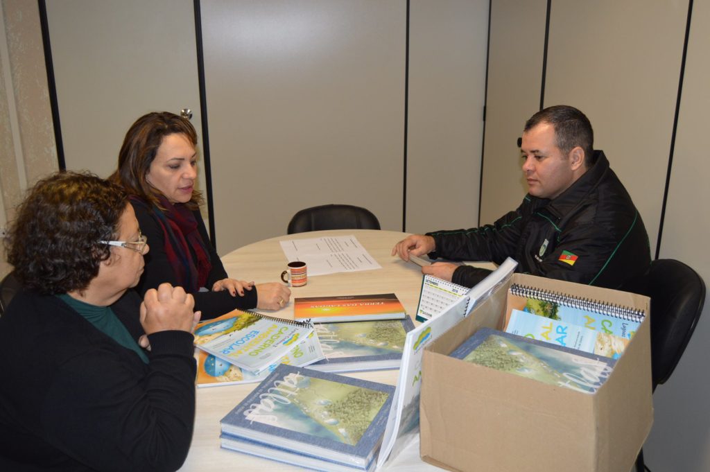 A Secretaria de Educação de Osório, representada pela secretária Lourdes Helena Gularte e a assessora pedagógica da Secretaria, a professora Naura Martins, realizou na manhã desta terça-feira (17/7) a doação de sete conjuntos de livros, incluindo Caderno Ambiental Escolar, o Atlas Fotográfico Terra das Lagoas e o Atlas Sócio Ambiental do Município de Osório, do Projeto Lagoas Costeiras III, ao curso técnico de Meio Ambiente da Escola Estadual Ildefonso Simões Lopes (Rural).