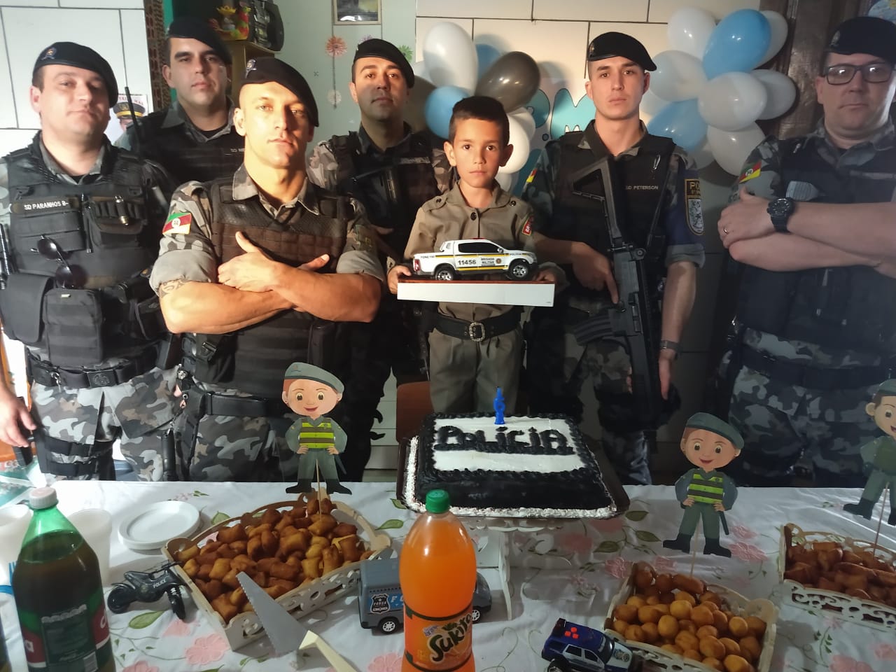 Com a autorização do Comandante, fizeram uma festa surpresa para o menino Davi que completou na última segunda-feira seis anos de idade.