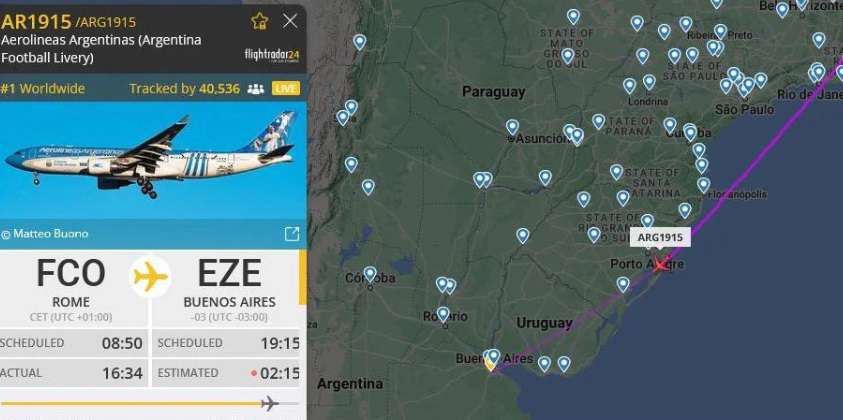 O voo AR1915 das Aerolineas Argentinas seguia para Buenos Aires.